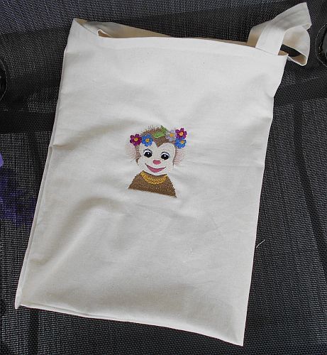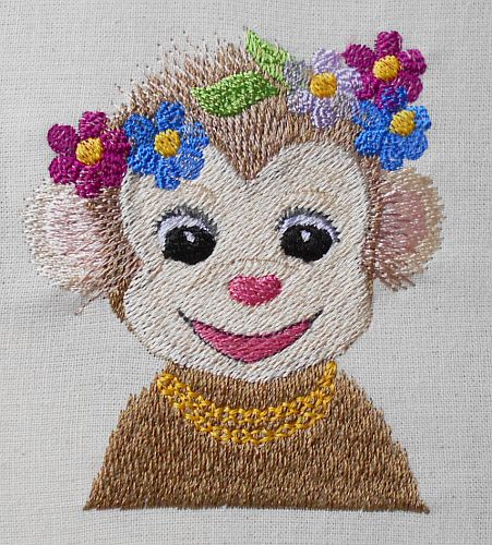 | Baby-Affe mit Blumenschmuck | Auf Filz | |