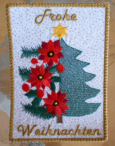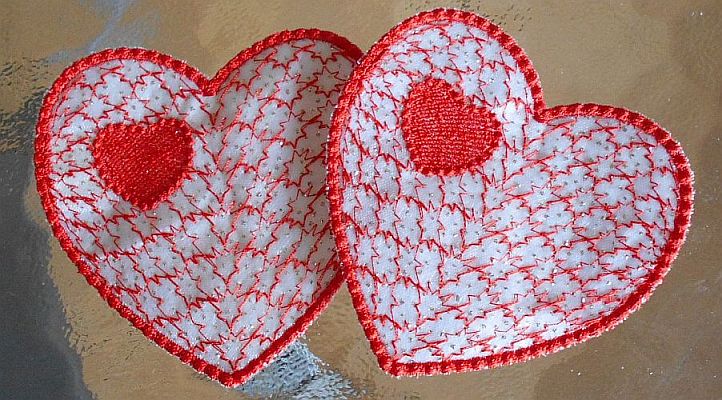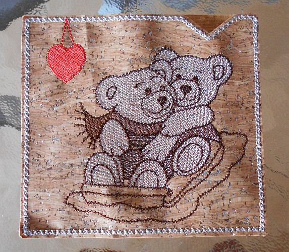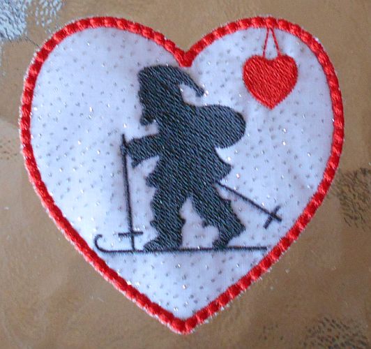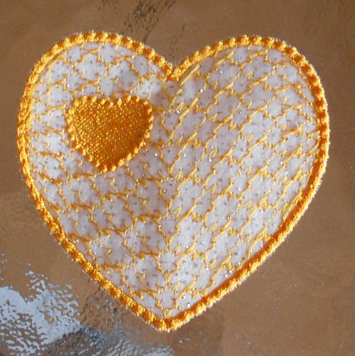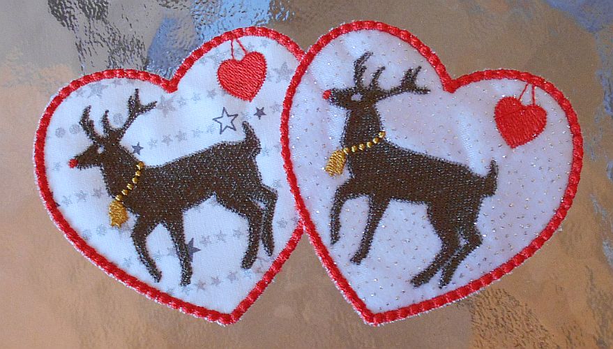 | "Verlaufende" Herzen auf Glitzerstoff gestickt | Hier sind es Sterne | |
