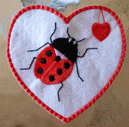 | Marienkäfer gibt es auch schon wieder - auf Stoff | und auf Kork | |
