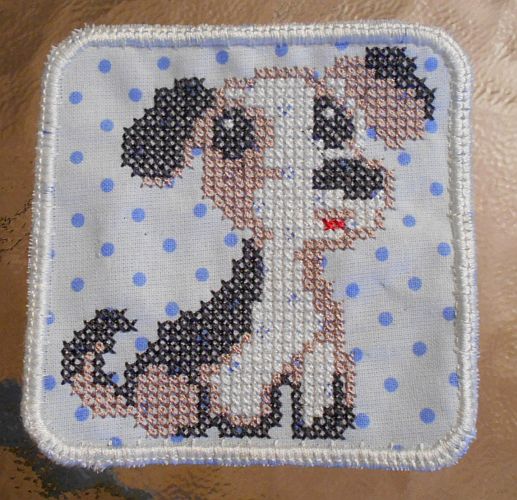 | Hunde-Applikation in KRZ (Kreuzstich) | AMC - Karte (Gesticktes Original leider nicht fotografiert) | |