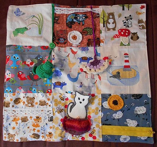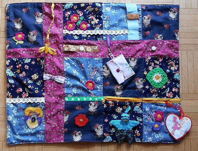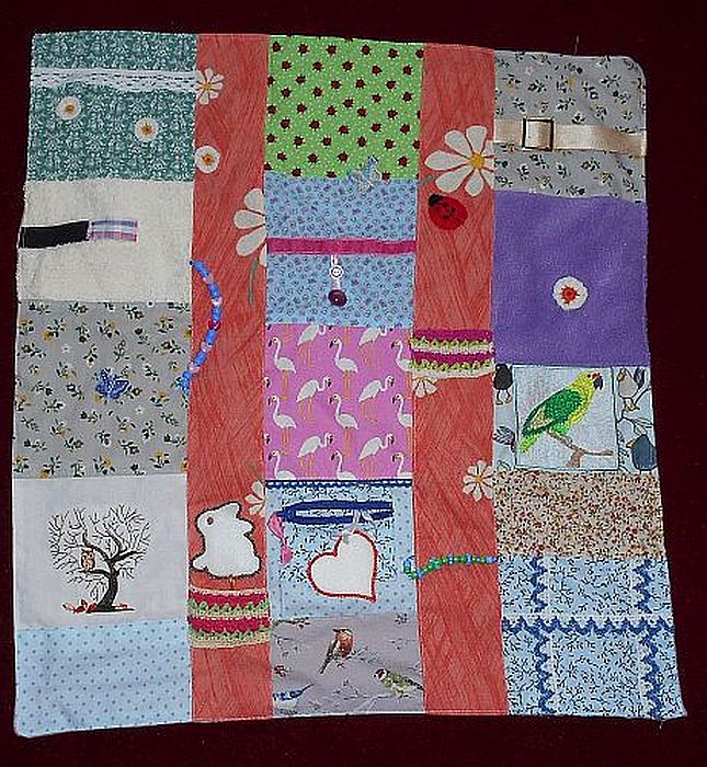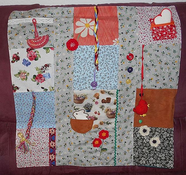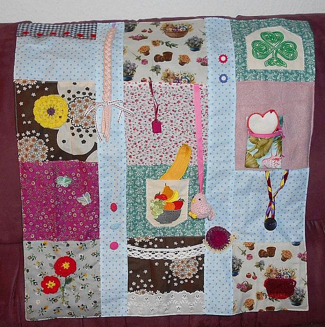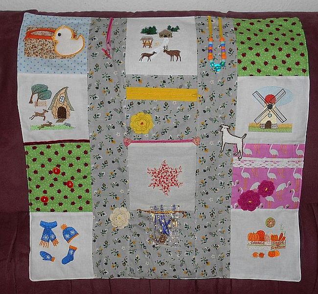 | Nesteldecken - sie sind gedacht für die "unruhigen" Hände demenzkranker Menschen, zuhause oder im Heim. Und vielleicht finden und erkennen sie darauf Gegenstände, die ihnen etwas bedeutet haben. |