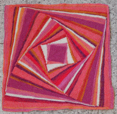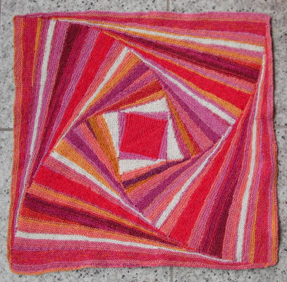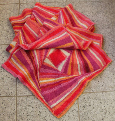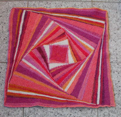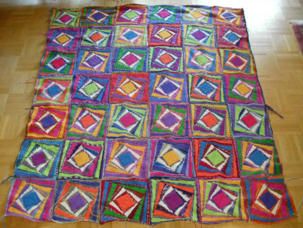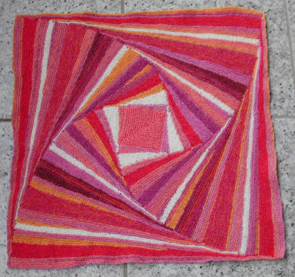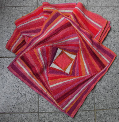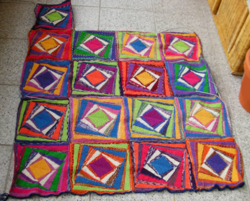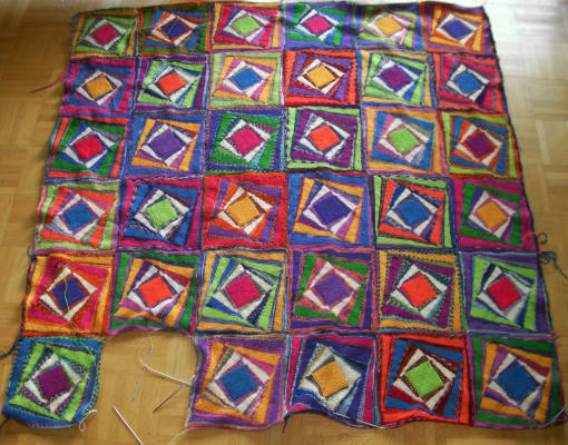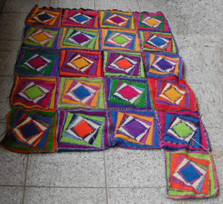 | Da ich einige Frühchendecken schräg ums Patch gestrickt habe, sollte auch dieses Teil so "enden" ... aber das wurde mal wieder ein Selbstläufer | ||