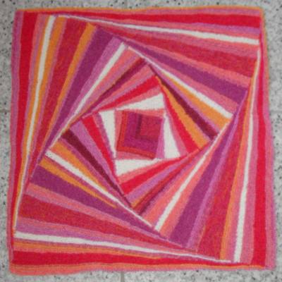denke mir, dass da doch noch mehr "anwächst". 2 Patches sind schon wieder dran - freie Minuten und irgendwelche Wartezeiten werden mit der Stricknadel verbracht. Da ich nie dasselbe stricken "muss", macht es mit jedem Patch mehr Spass. Zum Knipsen habe ich sie mal gedreht. |