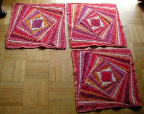 unaufhörlich. Und das Stricken der ca. 22x22 cm großen