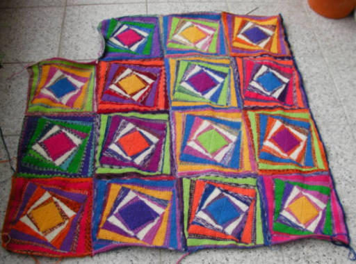 lieber 4 x 3 Patches werden sollen. Aber die 3 fehlenden sind noch gut machbar. Langweilig ist das farbige Stricken nämlich nicht. |