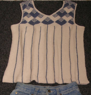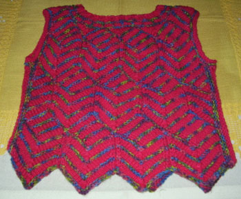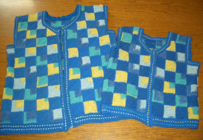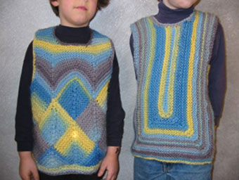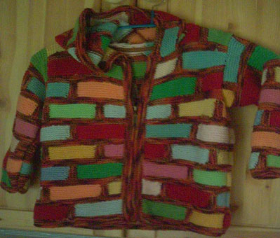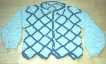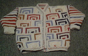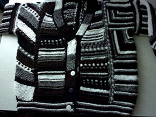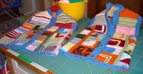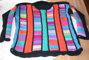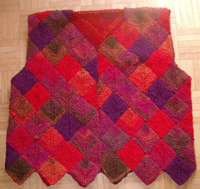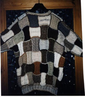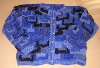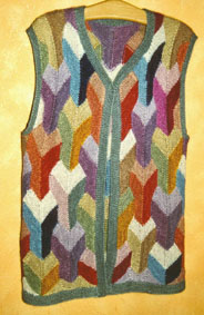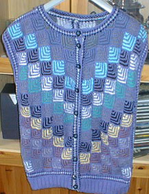 | Strickliesl ist nicht nur ein "Werkzeug" zum Stricken - Strickliesl ist auch eine yahoo-Strickgruppe - und Strickliesl ist auch BINE -- und im Sommer 2002 fertigte sie für eine Ausstellung eine Weste und einen Kinder-Pullover in Patchwork-Technik | ||