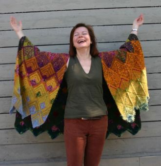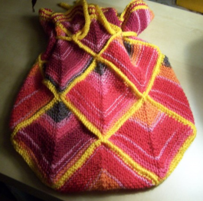 Marie aus Seide gestrickt. Die Patchecken sind umrahmt