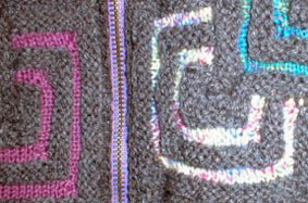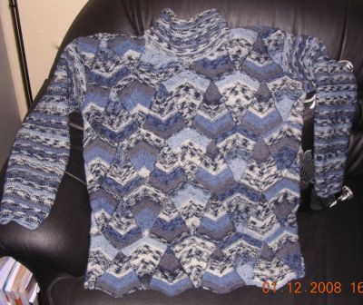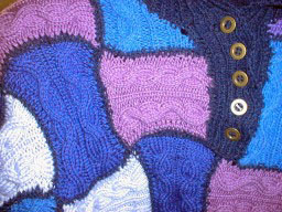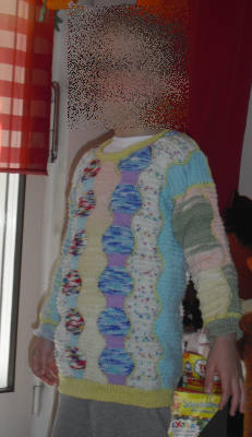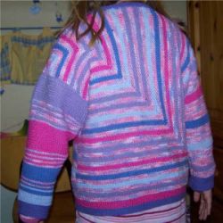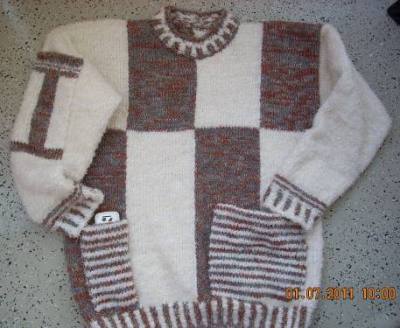 | Zanda hat einen Pullover mit Patchecken begonnen und dann herkömmlich weiter gestrickt - sehr schöne Idee |