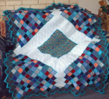 | Renate hat auch Gefallen am Patchworkstricken gefunden - dies ist ihr erstes Werk in dieser Technik |