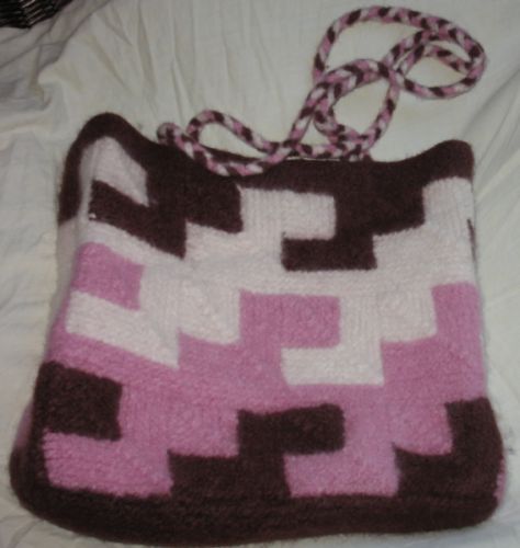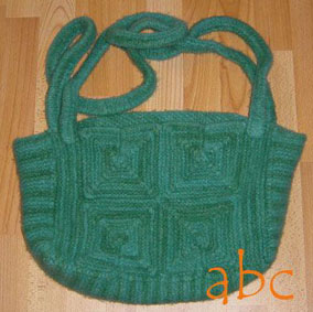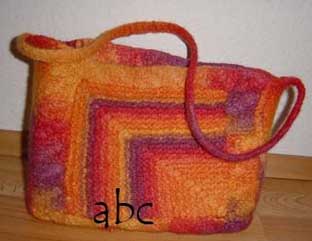 | Eine große Patchecke bildet diese Tasche | |