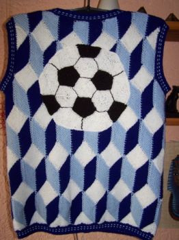 | Inzwischen ist Carmens Enkel schon im Fußball-Spieler - Alter. Der Fußball besteht aus 5- und 6-Ecken, und die Weste bekommt auch noch Ärmel zum Raus- und Rein"machen" | |