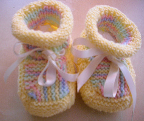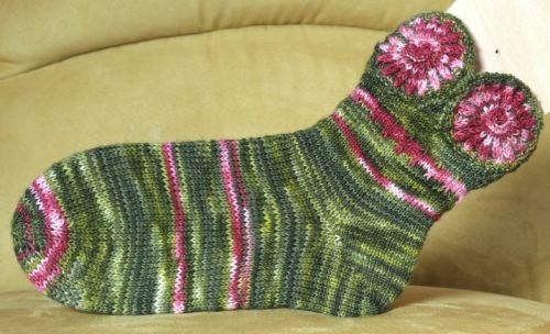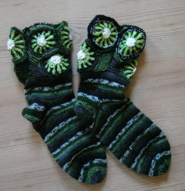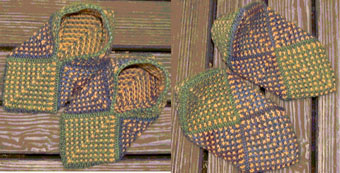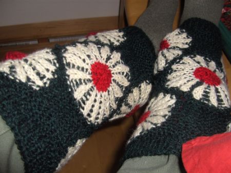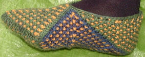 | Michaela hat auch die Reisepantoffeln gestrickt .. | .. dies sind ihre frischen Farb-Varianten | |