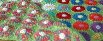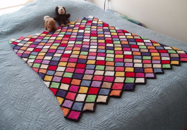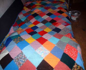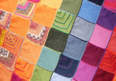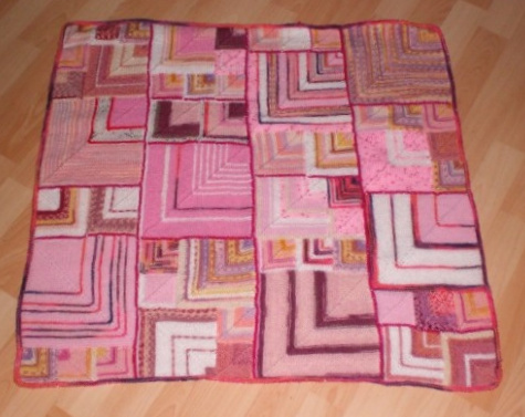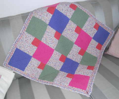 | Patchecken "machen" die Stulpen | Und nun noch eine Frühchendecke nach dem Muster "Schräg ums Patch". Das sieht sehr fröhlich aus in Form und Farbe. |