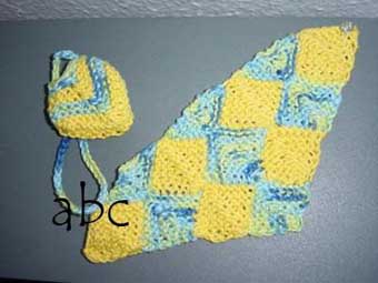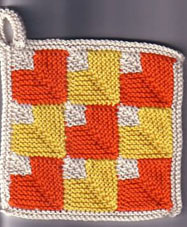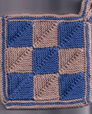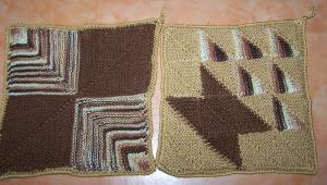 | Die Doppelmuscheln haben es Dorle angetan - schon wurden sie gestrickt. | Dieses sind Schrägstreifen mit 4-fach - Topflappen | |
