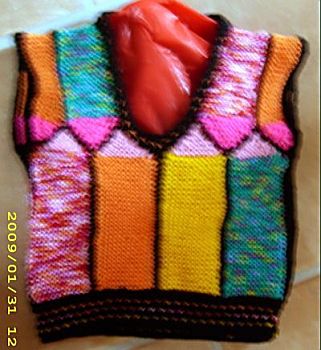 | Gaby aus München hat auch Gefallen gefunden an der Mosaikweste - ihr kleiner Schatz Katja sollte damit bestrickt werden. | ||