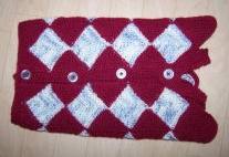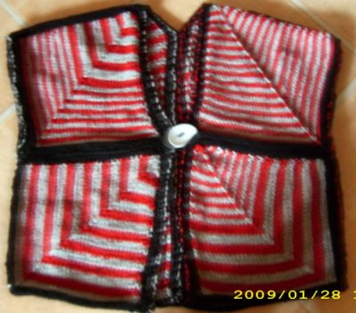 eine neue Jacke - 2fache - Topflappen-Patches. Gabys Stricknadeln haben nun aber den Bogen raus - in diesem Fall die Ecken! |