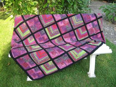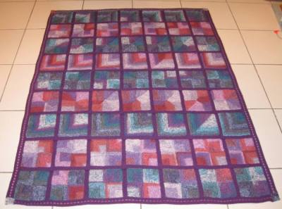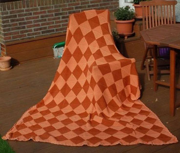 | Da das PWStricken nicht vor anderen Techniken Halt macht, kommt hier jetzt eine PW-Decke von Christine, die "schräg ums Patch" gestrickt hat. |