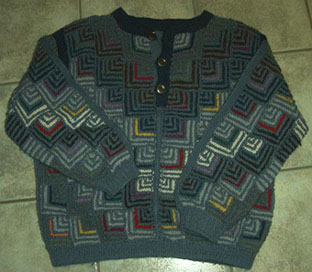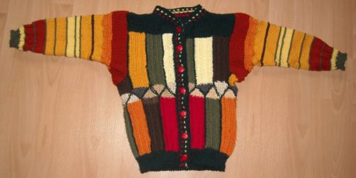 Patchwork-Strickmodelle Jetzt hat auch Jakob etwas in Topflappen-Technik bekommen - einen wunderschönen Pullover in 3-fach-Patchecken - sehr ideenreich gestrickt von Marie |