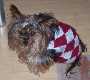 | Carmen ist eine sehe fleißige PWStrickerin - hier hat sie einen Sommerhut kreiert ... | Ein wärmender Pullover für den kleinen, kranken Hund, der leider kurz nach dem Fotografieren gestorben ist |