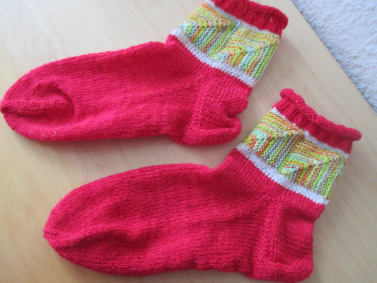 | und auch bei Socken ist Patchwork-Stricken nicht ungewöhnlich | |