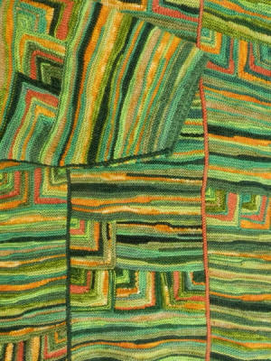 | Barbara findet immer mehr Gefallen an der Patchworktechnik - wieder ein neues Modell ! | Auch diese Streifen wurden in Patchworktechnik aneinander gestrickt - Barbara verwendet sie auch in der "konventionellen" Strickerei | |