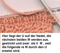 Maschenw eniger anschlagen, die zusätzlichen Maschen in