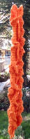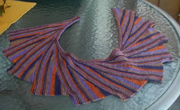 Urlaub muss man ja auch was "nadeln". Er ist mit weniger Maschen angeschlagen und hat auch leicht unregelmäßige Zacken, mal mit 12 Maschen, mal mit 9 Maschen. Die Fransen machen ihn ein wenig "harlekin"mäßig. |